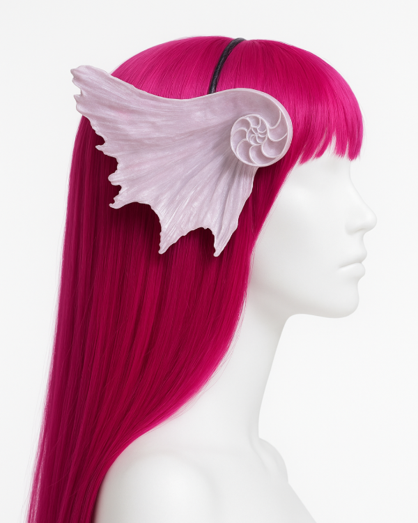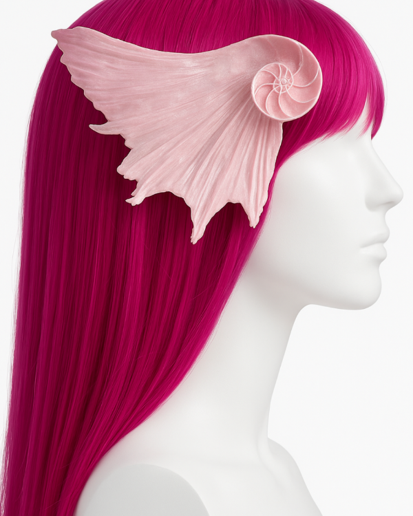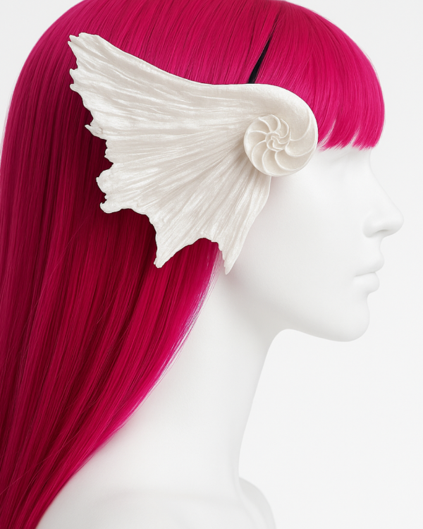 Elaboradas en impresora 3D y terminadas a mano con pintura artesanal, cada par es único en sus detalles. Su diseño reproduce con realismo la textura del caracol marino, extendiéndose en aletas que recuerdan al movimiento de las olas. Son livianas, cómodas y se adaptan perfectamente gracias a su estructura pensada para colocarse sobre el cabello como un accesorio protagonista.