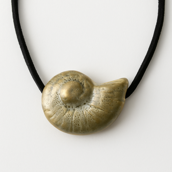 Su diseño minimalista pero impactante presenta un caracol marino esculpido con efecto metálico envejecido, que evoca los antiguos talismanes encontrados en los naufragios olvidados. La cinta de cuerina negra se adapta al cuello como una marca de identidad… como si llevaras contigo el conjuro de las mareas.
